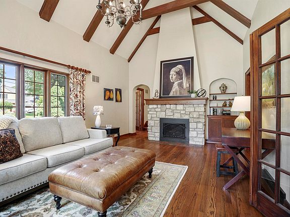 Old World Charm with modern day conveniences nestled on a ravine lot. Step inside to a grand living room with wood beam cathedral ceilings and stone accented gas fireplace and gleaming hardwood floors that flow into the bright open kitchen with 2 islands, stainless steel appliances, tons of white painted cabinetry and eat-in dining area. 3 seasons room overlooking a wooded ravine. Large family room, formal dining room, office and half bath completes the main level. Upstairs find the oversized primary bedroom with sitting area, 2 walk-in closets, bath with tile shower, soaker tub and direct access to a large laundry room. 3 additional bedrooms with hardwood floors and full bath. Unfinished bonus room, attached garage, 2 separate basements, 1 with egress window, 2 furnaces & landscaped lot.