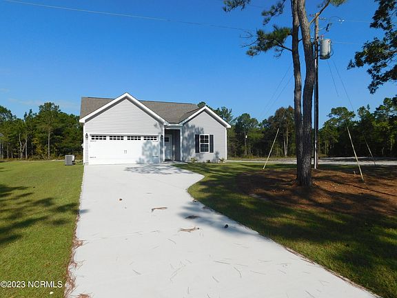 Country Living in Carteret County. No HOA. NO City Taxes .No Restrictions. This New Home sits on .43 acre and features Granite Counter tops in Kitchen, Quartz counter tops in Baths. LVP Flooring throughout,9ft Ceilings and Stainless Steel appliances. 3 Bedroom/2 bath with 2 car garage. Open Floor plan. Located in Award winning school district. Convenient to Beach, Military bases. and Shopping.