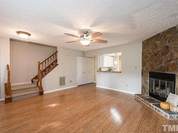 If you are looking for a quiet end-unit townhome in the heart of Cary..This is it! This move-in ready cutie boasts fresh paint through out, new kitchen countertops/sink/hardware, updated(2018) floors downstairs & newer floors upstairs in the two over-sized bedrooms & bathroom. Added electric light in bedroom closets & in the smaller bedroom. Cozy up next to your stone fireplace or put outside string lights up & enjoy the cool night air on your large patio & lawn.