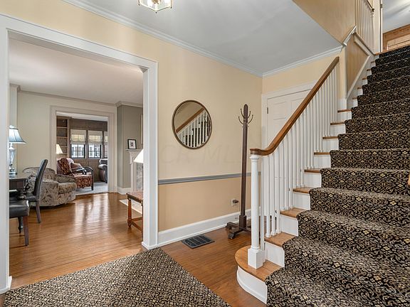 Handsome Brick Center Hall that offers a Central Bexley location. Meticulous and shows with the pride of ownership! Exposed Hardwood floors. Updated kitchen with stainless steel appliances, beautiful hardwood cabinetry and a nice pantry area. A Dutch Door leads out to the brick patio surrounded by perennials. The Living room and Den area have a shared woodburning fireplace. Master bedroom with bath and walk in closet. Updated HVAC and Hot water tank. Basement has a finished area with new carpeting, good lighting, as well as a room for an office space or storage. Large 2.5 car detached garage. Professional photos will be loaded on 4/4/2024. Call today for a showing.