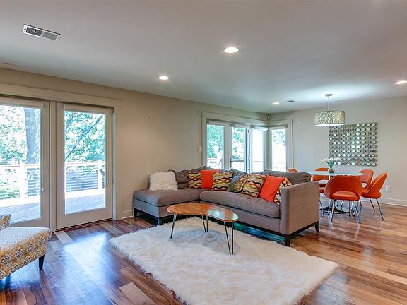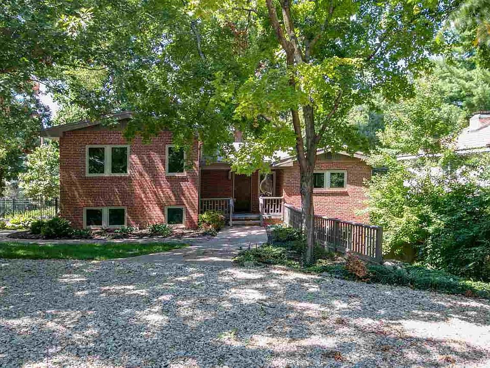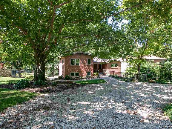 No expense spared on total renovation of this all-brick upscale home located on charming brick street set on corner double lot w/ wooded yard & wrought iron fencing. Circle driveway & covered front porch takes you inside entry to spacious Liv/din w/ stunning hand-hewn WD floors, plantation shutters, modern wall lava FP, TV. wall of F to C windows & access to large 27x13 deck overlooking wooded yard. Built-in wet bar & modern cabinetry. Gourmet kitchen features upscale SS appliances including Dacor 6-burner gas stove, upscale fridge w/ front to match cabinetry, quartz counter tops, custom espresso cabinetry by Crystal Cabinet Works-all soft-close. Elegent MBR w/ stone wall, gas FP, TV, WI closet. Awesome MBA w/ granite dbl sinks, built-ins, radiant heated floors, large WI shower. Upper level has two bedrooms, dbl closets, BA & WI shower. Full lower level w/o has FR, laundry w/ sink, BR & full BA. Brick walkway to detached garage. Storage shed. Square Footage per county records.