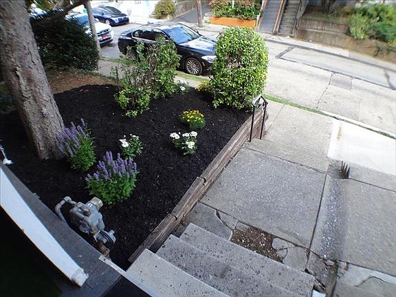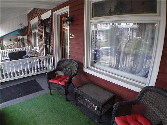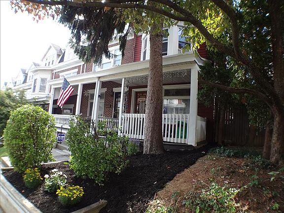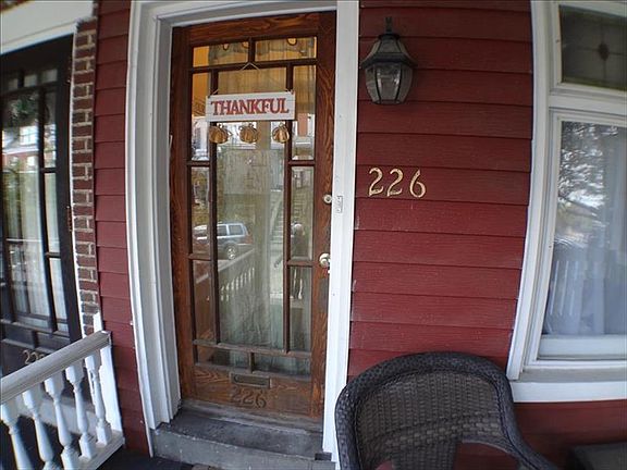 ***All offers are due Saturday 10/10 by 12pm***Spacious end unit in a convenient location. This home has a warmth and charm with stained glass windows, a covered porch that leads to the entry foyer. 4 bedrooms, remodeled bathroom. One bedroom has a balcony. The attic bedroom is huge. There is a one car garage with a fenced courtyard. Eat-in modern kitchen with glass top stove, dishwasher, microwave and plenty of cabinetry. The washer, dryer and refrigerator remain. The living room has built in bookshelves. Nice sized dining room. Wood floors throughout the house. Replacement windows (except stained glass). Economical as hot water heat. Basement laundry with bilco doors.