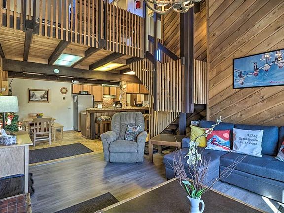 Discover this condo in Chalet Village offering 4 bedrooms and 3 bathrooms. The property is being sold 'turnkey,' including all furnishings, appliances, dishware, & more ensuring a seamless transition for new owners to settle in or continue to use as a short-term rental which are allowed in this HOA. This property features a huge private dry sauna, stunning views from every room, two wood burning fireplaces and high ceilings. This top floor condo has no neighbors to the sides keeping the unit very quiet plus 2 balconies. One of the bedrooms can be locked off as a separate studio unit. The primary bathroom offers a large soaking tub and dual sinks. With great income history and outstanding 5-star reviews, this condo is a prime investment. The website & existing bookings are transferable.