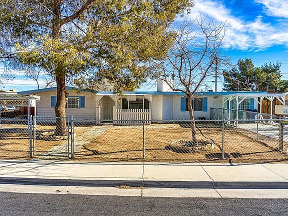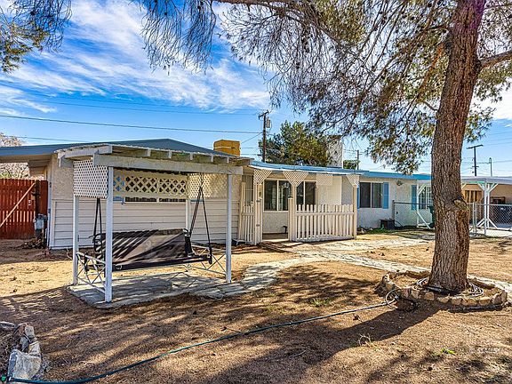 THIS CHARMING HOME HAS BEEN UPDATED WITH NEW PAINT THROUGHOUT THE HOUSE, NEW WINDOW BLINDS AND LOVELY LAMINATE FLOORING IN THE LIVNGROOM AND FAMILY ROOM. THE FRONT YARD HAS CHAIN LINK FENCING AND A CUTE SWING UNDER A GAZEBO TO ENJOY YOUR COOL DESERT EVENINGS OUTSDE. ENTER INTO THIS SPACIOUS LIVNGROOM WITH LOVELY LAMINATE FLOORING, AND LOVELY FIREPLACE AND NEW WINDOW BLINDS. SPLIT FLOOR PLAN. THE LARGE MASTER BEDROOM AND ANOTHER GUEST BEDROOM WITH BATHROOM LOCATED ON NORTH SIDE OF HOME. THE KITCHEN HAS DISHWASTER AND STOVE WITH FORMICA COUNTERTOPS. ENTER THE LOVELY FAMILY ROOM/DININGROOM WITH WOOD BURING FIREPLACE TO WARM THE CHILLY EVENINGS. ANOTHER BEDROOM IS OFF OF THE FAMILY ROOM WITH BATHROOM. LARGE LAUNDRY ROOM WITH SHELVES. WALK OUT TO THE BACK YARD THROUGH SLIDING GLASS DOOR AND YOU WILL NOTICE THE SUPER LARGE SPACIOUS BACKYARD. COVERED PATIO AND RV PARKING. DETACHED 1 CAR GARAGE WITH AUTO DOOR. INSIDE THE DETACHED GARAGE HAS EXTRA ROOM FOR WORKSHOP AND EXTRA STORAGE. CAN ALSO BE SET UP FOR A MOTHR IN LAW UNIT. JUST ADD A BATHROOM. THIS PROPERTY IS A PROBATE SALE BUT EXECUTOR HAS FULL AUTHORITY TO SELL . AS IS CONDITION.