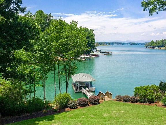 Welcome to 226 South Summit Drive on Lake Keowee... Located on a northwestern facing peninsula, this impeccably designed home features the highest quality detail to match its expansive gently sloped point setting. Custom built in 2008, this Kisker Construction masterpiece offers luxury and comfort in every selection with loads of intricate detail for the discerning buyer. There is something for everyone in the numerous entertaining areas both inside and out. Upon entry, the large palladium windows greet with a panorama of crystal blue waters and Blue Ridge Mountain views. The vaulted great room is accented with painted beams and a soaring stone gas fireplace. The gourmet kitchen features custom cabinets with several roll outs and large storage drawers, granite counters with an oversized refrigerator and walk-in pantry. An open eat-in kitchen design overlooks the lake and large living area. Adjacent is the Butlers Pantry for overflow kitchen workspace to accommodate entertaining any sized gathering. Off the dining is the classic staple in lake living, a generous screened porch. With 300 square-feet of living, tile floor and plank ceiling, this shaded outdoor seating area is great for morning coffee, evening cocktails and large enough for added family living and dining. On the opposite side of the home is the owners suite highlighted by a specialty tray ceiling, large windows with expansive water views and loads of natural light. The bath offers granite counters, a soaking tub, individual vanities, a true walk-in tile shower without any glass shower doors to clean and two walk-in closets. A second main level bedroom is off the entry with a private full bath. A concealed fireplace offers added comfort of guests and makes this a cozy alternative for a home office or den. The terrace level features a secondary living room with a second kitchen and third gas fireplace. There is also a game room, workshop area and a transitional fifth bedroom that is currently the owners office. Two guest bedrooms are included on this level, both with water views and en suite baths. Outside is a covered patio accented with architectural columns and an outdoor spa. A paver patio extends the entire rear of the home and leads to a gentle landscape with an indescribable mountain view backdrop. Over 235 feet of protected Lake Keowee shoreline accompanies your walk to your private covered slip dock with low maintenance ironwood decking and boat lift. Landscape features include accent lighting, mature landscape and irrigation from the lake, all in the private, preserved surrounding found in this unique point style lot. Added storage can be found in the oversized three car garage and so much more. Experience a lake lifestyle like no other, schedule your viewing of this unique property today! Video link offers virtual video tour and floor plan details.