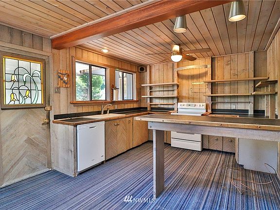 Fantastic location (DOUBLE Sized LOT) This charming property is just waiting for your TLC. Large flat lot partially fenced. A large entertaining deck welcomes you in. It feels like you are stepping into a warm and cozy cabin. Spacious kitchen with rustic eating bar, the living room has a beautiful teak wood ceiling and gas FP. Master bed on the main, second bed and large 3/4 bathroom. The lower level has 2 potential rooms that could be converted to bedrooms, another 3/4 bathroom, a laundry area. The lower level also has a large workshop. A BIG BONUS of this property is the Huge 4 CAR GARAGE 26X47 (1,222 Sq Ft.) Tall ceilings are high enough to house an RV. Lots of extra parking. Buyer to verify any & all info to to their satisfaction.