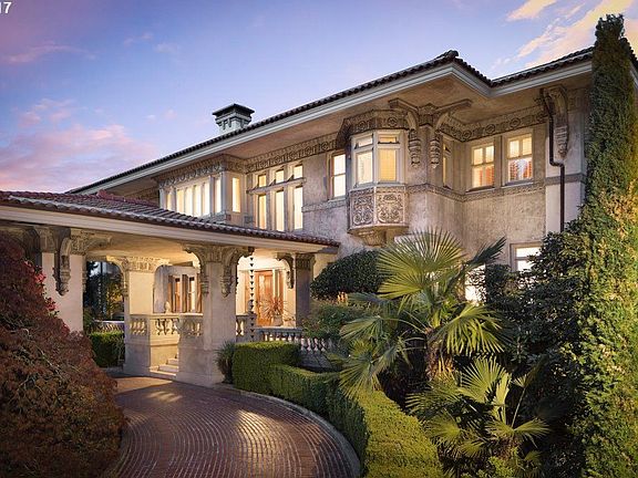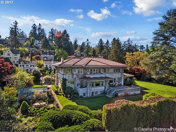 A true masterpiece featured in Portland Monthly Magazine, Classic Houses of Portland & Portland Spaces Magazine. Ranked one of Portland's top five private homes on 4.5 level lots with views of park, city, & Mt. Hood, circular drive, vestibule, library, billiard room, wine cellar, large sunny kitchen, fine millwork, large terrace, balconies, porches, greenhouse. Serene and Private. Listing includes house and lots.