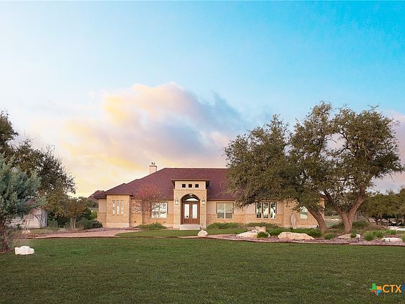 Located in a highly sought-after community on the northwest side of Canyon Lake, this Hill Country home is tucked away in the desirable gated Cascada Subdivision. This beautiful residence sits at the end of a peaceful cul-de-sac, featuring over one acre of land adorned with numerous oak trees. The exterior boasts a stunning combination of rock and stucco, highlighted by an arched rock entryway. Inside, you'll find a grand foyer with decorative tile floors, an art niche, and a raised boxed ceiling accented with double crown molding. French doors lead into a spacious dining, office, or flex room complete with wood flooring. The expansive living room features high ceilings, a rock fireplace, tile flooring, and convenient access to the patio, making it a perfect space for relaxation and entertainment. Also of interest is the oversized three-car garage with high ceilings and a Generac whole-house generator. The serenity of the location and the wildlife viewable from the covered patio are sure to be treasured by all. This beautiful home in an outstanding community also has easy lake access via the amenities center and is a short drive away from local restaurants and area attractions.