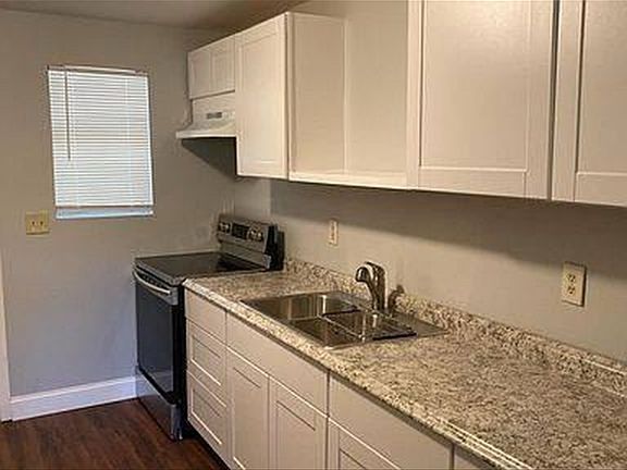 Kitchen: Updated Cabinets Equipped with essential appliances, including a refrigerator and range/oven, catering to your culinary needs.