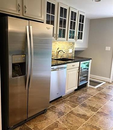 Beautifully renovated! Flexible floorplan. Corner lot with stream running through back yard. New 30-year roof, gutters downspouts, and siding. New R-49 insulation in attic, new windows and doors. New Whirlpool kitchen appliances, wine refrigerator. Refinished original hardwood floors. Huge mudroom with water-resistant floor. New garage door, re-sealed driveway. Brand new deck. TONS of storage space!