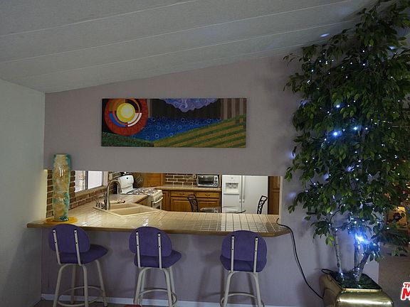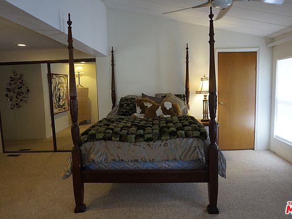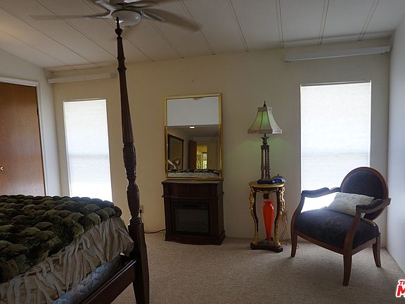 TWO BEDROOM and DEN and SUNROOM Large south facing home with vaulted ceilings in Great Room, even the closets have vaulted ceilings! Kitchen features ample counter space and storage with an appliance garage-roll out shelves, instant hot water tap. Buyer to verify the actual square footage as this is one of the lowest price sq residence in the Canyon This home is Abundant natural light throughout the year beams through new dual paned windows with custom coverings. Master Bedroom is oversized with an adjacent Den and a third entrance, Original interior walls textured and painted Ceiling fans throughout. Laundry Room secondary refrigerator and access to patio and parking. Outdoor Storage has a finished interior with additional electrical which could be used as a workshop adjacent to this is the gated Patio surrounded by cool lush privacy hedges and planters;.Pet restrictions of weight, size, height,