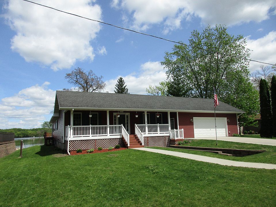Beautiful waterfront home with breathtaking views of the main channel. Warm maple kitchen with granite countertops and stainless steel appliances. Huge living room with windows on three sides provides a panoramic view. Impressive custom fireplace. This 3BR home offers 2 BA (a private master bath and a new full bath constructed in 2019), hardwood floors, central vac, newer washer/dryer, C/A and furnace. The heated 2.5 car garage has a workbench area, with extra work space in the unfinished storage basement (and ample storage for river toys). Watch the sunrise on your huge deck overlooking the river, and the sunset from your beautiful front porch.