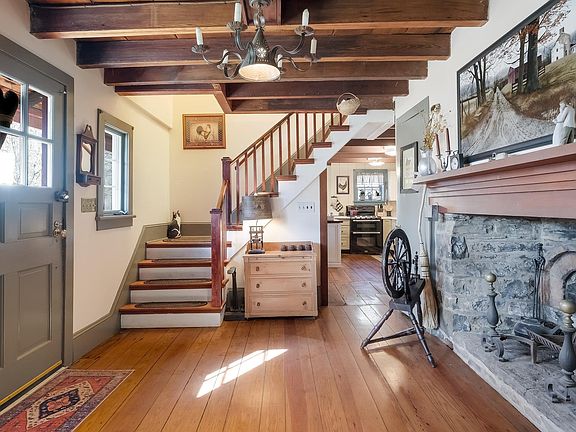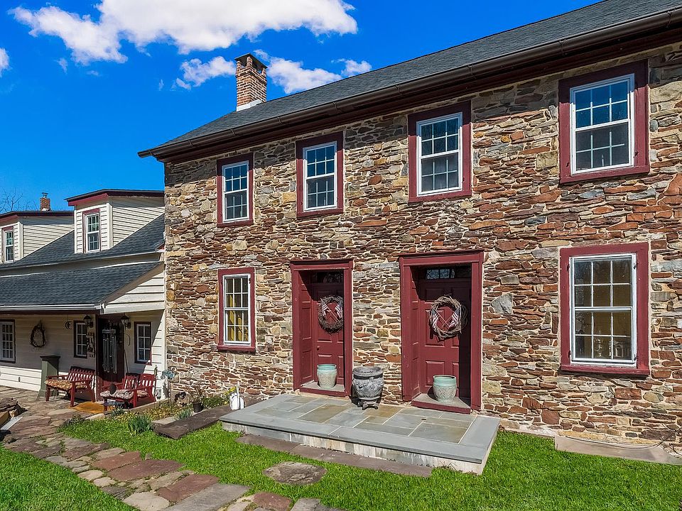 Introducing 226 Smithtown Road, a Bucks County Stone Farmhouse, circa 1780, situated on 3.65 acres. This beauty is located within walking distance of Ralph Stover State Park, and just a five-minute drive to the Delaware River. This home offers charm, style, and endless comfort and entertainment, both inside and out. The Farmhouse includes five fireplaces with wood mantles, beamed ceilings, exposed stone walls, wide plank pine flooring, deep windowsills, built-ins and storage cubbies, original doors and hardware, pie staircases and much more. You will immediately experience this when entering the home’s foyer and are greeted by the first walk-in fireplace. This home is not only charming but functional with large rooms and a versatile floor plan. You will also rest easy with a brand new roof and an almost new, lightly used septic system installed in 2017. Off the eat-in kitchen is what was an enclosed porch, now currently used as the dining room and office area, both overlooking the mature acreage and scenery. Continue through the dining room to a comfortable family room surrounded by large windows with exceptional views of the property. Completing the first floor, in the original part of the home, is the living room with wood flooring, beamed ceiling, two fireplaces, and built-in bookcases. The second level has three nice sized bedrooms with wide plank flooring, good closet space, a large upstairs foyer, a full bath, and two staircases providing access to the attic storage. The outdoors creates a peaceful setting for relaxing and large enough for any activity, with a huge fenced-in garden area, a greenhouse, beehives and, of course, a chicken coop with six hens (Peggy, Penny, Pippi, Poppy, Polly and Patty). To top off the property, a large working barn located to the right of house, can be used for storage for toys and equipment or workshop.