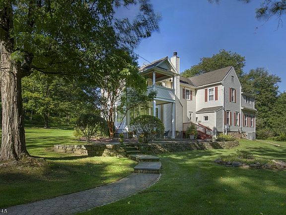 A feeling of serenity begins as soon as you drive down the private wooded lane leading to this polished antique gem on two-plus acres. Steeped in history, the restored circa 1870 Colonial creates a delightful presence on the acreage. While it maintains much of its vintage character, it has been thoughtfully updated and beautifully maintained over the years. The four bedroom, three full bath layout has a great flow for entertaining. An expansive living room leads to the kitchen and dining area, which continues on to the family room and cozy sun room filled with natural light. Featured throughout the home are original design elements such as oak and pine floors, generous baseboard and crown moldings, French doors, coffered ten-foot ceilings and original bead board walls in the kitchen. Upstairs in the original section of the home are three bedrooms and a full bath. There is also a bonus room and a spacious master suite which includes a cathedral ceiling bedroom, sitting area with French doors and a full bath. An added amenity is the private deck overlooking lush views. The original basement has been expanded with each renovation. Offering plenty of room for storage, it also houses the utility area and the laundry room. A detached three-car garage/barn includes three parking bays, a separate area for firewood, and ample storage space. This charming and unique outbuilding can be used for a variety of purposes. A bluestone patio and walkways framed by professional landscaping lend further tranquility to the picturesque grounds. This renovated Colonial is close to shopping, major highways and public transportation as well as top-rated public and private schools.