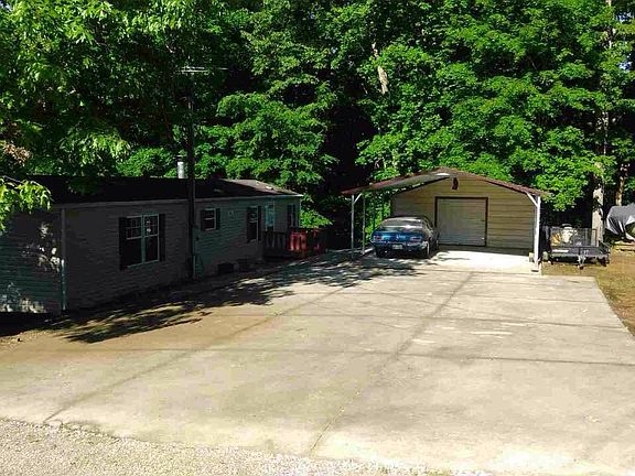 Lake front 2 br 2 ba block foundation shingle roof fireplace thermopane tilt in Windows 10x56 deck concrete driveway boat dock 2 car carport 10'x18' storage bldg. With roll up door 110 power lights.