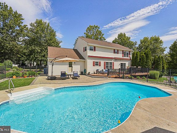 Nestled in the highly sought-after Summerwind Community, this stunning 4-bedroom, 2.5-bath Colonial home with a beautiful in-ground pool is the epitome of modern comfort and elegance. The freshly painted interior welcomes you with a foyer featuring hardwood floors that lead into the sun-filled eat-in kitchen. Truly a chef’s dream showcasing beautiful granite countertops, sleek white cabinetry, a double wall oven, a gas range, a built-in microwave, a center island, and updated lighting—all complemented by custom tile flooring. The spacious living room, currently used as a private first-floor office, offers versatility with added doors for quiet and focus. Off the kitchen, the formal dining room impresses with crown molding, chair rail, and modern lighting, perfect for hosting gatherings. The cozy family room is the heart of the home, featuring recessed lighting, crown molding, and a gas fireplace with a custom mantle and marble hearth—ideal for chilly winter evenings. One of the standout features of this home is the oversized mudroom, complete with custom built-in cabinets and ample storage space. A new exterior door leads out to a beautifully designed paver patio, perfect for outdoor entertaining. The first floor is completed by an updated powder room and a convenient coat closet. Upstairs, the master bedroom suite offers a walk-in closet and a completely renovated main bath. This luxurious bathroom boasts an espresso double vanity with granite countertops, tile flooring, a private water room, and an expanded custom tile shower with built-in shelving and seating. Three additional freshly painted bedrooms provide plenty of closet space and share a fully updated hall bathroom. The second-floor laundry room adds to the convenience. The large finished basement is an entertainer’s delight, featuring a built-in bar and TV area, along with plenty of space for storage and a home gym. Outdoor living is equally impressive with a two-tier Trex deck, dual awnings, and a gorgeous in-ground pool equipped with a new liner, filter, pump, and cover. The fenced rear yard offers privacy, bordered by open space maintained by the Summerwind Association, which includes over 40 acres of natural beauty with walking trails. Additional updates include a 2018 new roof, gutters, trim, fascia, and more, ensuring peace of mind. The home also features a new hot water heater (2022), radon mitigation system (2022), new Samsung kitchen appliances (2023), and a child safety pool fence. This property’s location is unbeatable, with close proximity to trails, parks, schools, and major routes like Rts. 113, 63, 73, and the PA Turnpike. Don't miss out on this exceptional home in a great neighborhood, adjacent to open space with your own backyard paradise. Schedule your appointment today!
