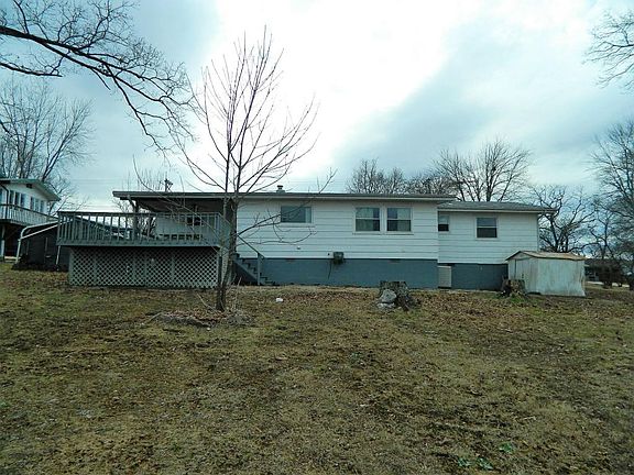 Just a mile south of Shadowrock Park on Bull Shoals Lake, this compact ranch-style home has roomy back yard, big back deck and is an easy 2 minutes to downtown! 2 bdrm, 1 and 1/2 bath floorplan (den could be 3rd bdrm) has open living/dining/kitchen and original flagstone wood-burning fireplace. Full bath has walk-in shower, dual sinks. Updates include solid surface kitchen countertops, dual-pane windows, roof & more. Pardon our boxes, owner is in process of moving to be with family. Some furniture can stay. Xtra long 25' garage PLUS roomy carport for storing the boat, golf cart, firewood, etc.