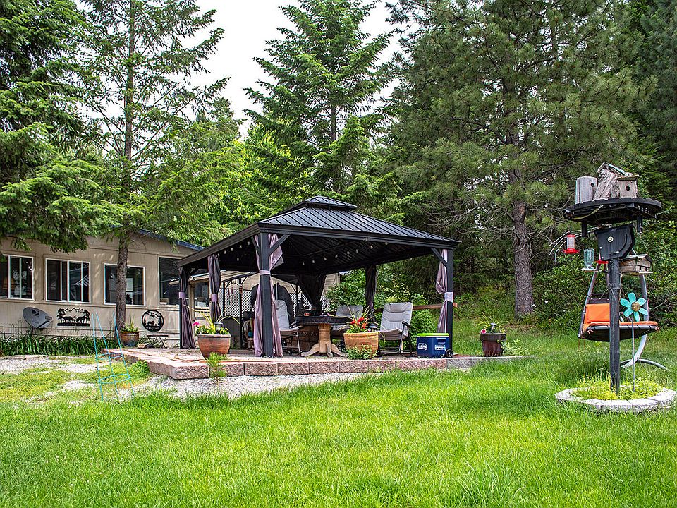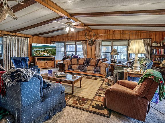 SECONDARY WATERFRONT home...This 3bed/2bath 1984 Manufactured home features 2140 SqFt of living space, vaulted ceilings in the living rm w/freestanding wood stove & water views.700 SqFt of enclosed additions create ample space for office/bonus room. Dining area w/wood laminate floors & built in china hutch. Kitchen has lots of cabinets & separate laundry room (Washer/Dryer included) w/storage. Attached 1 car Garage w/cold storage area & 3 bay detached carport. ADA Compliant ramp to access the addition to the home.Private corner lot w/southern exposure, detached 12x16 bunk house for your guests to enjoy & 12x20 metal gazebo to relax under while you take in the water views. Quiet setting w/garden area, fire pit & fruit trees.Located minutes from the community waterfront lot.