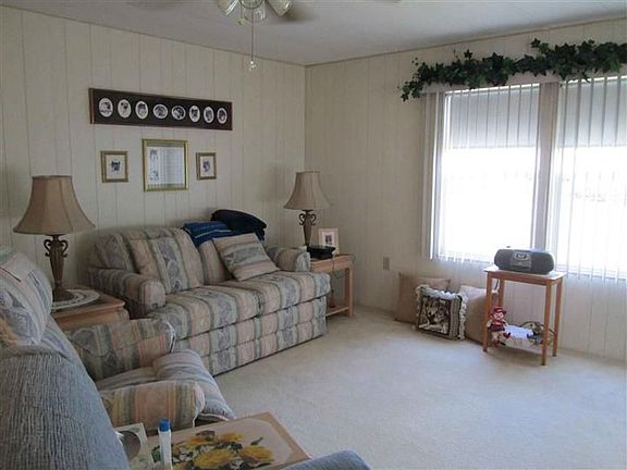 This beautiful and spacious two bedroom/two bath home on a large corner lot boasts many upgrades: two-year new cabinets, counter top and flat top stove in kitchen, Florida room with double hung windows that make cleaning a breeze, and 2 1/2 ton air conditioner and new duct work completed in 2012. Home comes furnished and includes LazyBoy loveseat and matching rocker/recliners in living room. Laundry room in oversized outside shed includes a laundry tub and extra shelving. Purchase for yourself or as an investment property as renting is allowed. Purchase only the home and lot rent is $688 monthly or purchase the share for $63,000 and monthly fee is only $250. Monthly fee includes trash removal, recycling, water/sewer, lawn mowing and edging. Orange Harbor is an over age 55 resident owned community close to shopping, restaurants and beaches. Dont miss this lovely home! Bring offers! Contact Carol Legg at 715-939-9777 or Bill Ignatuk at 219-781-0704.