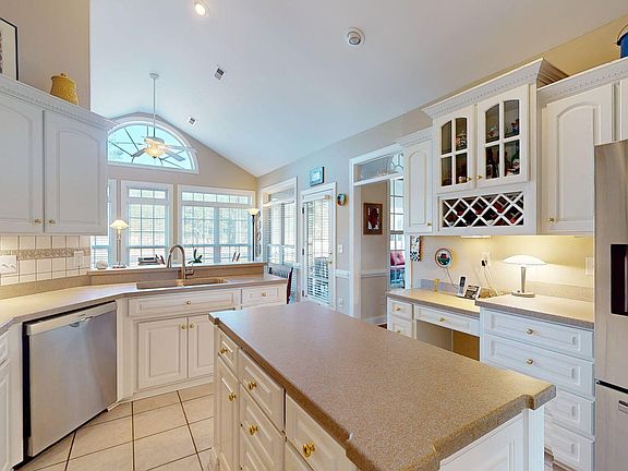 BRICK BEAUTY IN PRISTINE TABERNA GOLF COURSE NEIGHBORHOOD ON QUIET CUL-DE-SAC ....overlooking 3rd fairway, this 3 bedroom 3 1/2 bath, 2,781 square foot brick home is ready for your personal touches. Just the perfect size and layout to offer guests separation and space. Enter from covered front porch into foyer with formal dining room with tray ceiling and tons of natural light. Ahead is beautiful open vaulted ceiling living room with built ins and fireplace. Access to screened porch from both living room and kitchen area. The eat in kitchen has an island, abundant cabinetry, pantry, desk area, solid surface counters, transom windows, tiled floor, vaulted ceiling and 3 sided wall to wall windows overlooking the beautiful back yard and golf course. There are two bedrooms off foyer with shared full bath. The primary bedroom offers french door access to private outdoor patio for star gazing or morning coffee as well as easy access to kitchen. The ensuite has separate vanities, deep jetted tub, stand up shower, separate water closet and plenty of storage. There is a walk in closet off primary. The laundry is down the hall to garage that also hosts a convenient 1/2 bath. This hall leads to the finished room over garage that has a full bath, gorgeous double window with transom, space for everything up here. Office, workout room, guest quarters, 4th bedroom, craft area, you name it! 2 car garage with golf cart door and utility sink. No repairs to be made or negotiated. Call today to see this incredible home before it is too late! Taberna offers golf and pool memberships at additional fees. There is a walking loop, dog park, playground, tennis, nature walk with canoe useage. Convenient to MCAS Cherry Point, downtown New Bern, medical facilities and only 40 minutes to the beautiful Crystal Coast.