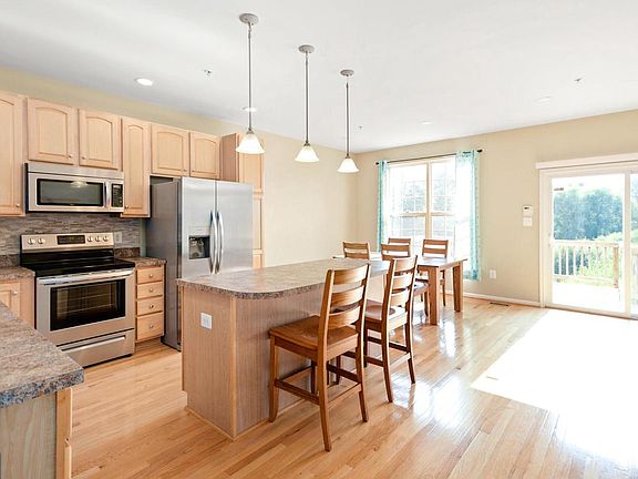 3 levels of full bump outs, over 2,500 square feet of finished living space, backs to trees for privacy - WOW! All this AND the convenience of the new Christophers Crossing exit for easy access to Rt. 15! BRAND NEW WASHER and stainless steel OVEN and REFRIGERATOR, A/C FURNACE (2019), newer carpet and fresh paint. Bright, open floor plan with kitchen island, back staircase, en-suite master bath with soaking tub, walk-in closets, new bathroom flooring, 4th bedroom with private full bath on the main level, fully fenced backyard, full deck with stairs, community pool, 2 assigned parking spaces- HURRY for this one!