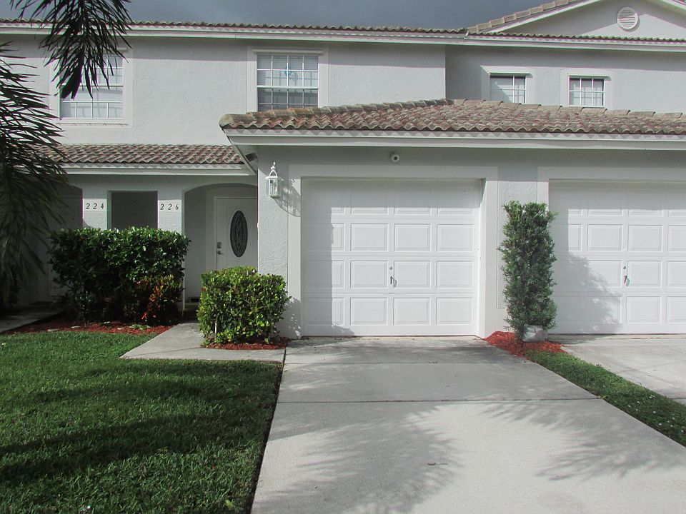 2 Bedroom, 2 1/2 bathrooms. Located in a quite gated community with beautiful landscaping, and great amenities. When you first walk into the door you'll notice the open concept. With the garage at the front of the house and direct access to the kitchen, you'll find it easy to unload your groceries. The 1/2 bathroom is conveniently located on the first floor. While sitting in the back patio, you'll have beautiful views of lush landscaping and partial view of the lake. Down stairs also has porcelain white tiles. Wood flooring on the stairs and second floor. Washer and Dryer are also conveniently located upstairs. Both bedrooms are located upstairs. Master bedroom has its own private bathroom and walk in closet. The second bedroom also has a private bathroom and walk in closet. When you go outside you'll find your self steps away from the community pool located in back of the home. Its location can't be beet. Your walking distance away from shopping, restaurants, grocery stores, parks and schools.