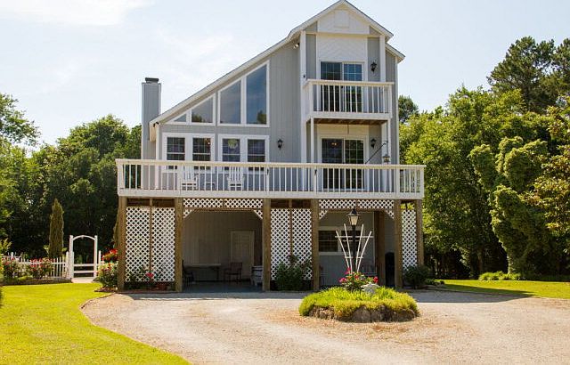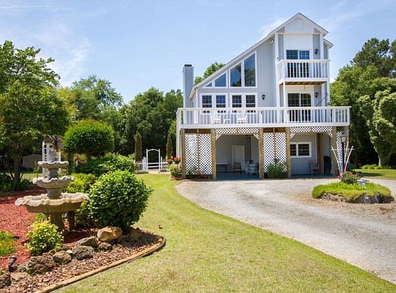 Custom built coastal cottage style home on large lot with view of the Intracoastal Waterway and immaculately landscaped yard with a variety of perennials, bushes, trees, patios, walls, arbors and fences. This 3 bedroom 2 and ½ bath home is approximately 1720 sq ft on 2nd and 3rd floor and 550 sq ft additional studio with utility sink, and workshop on 1st floor. The main living area features lots of custom windows for plenty of natural light, open and airy floor plan with vaulted ceilings, newer wood laminate flooring, fireplace and sunroom. One bedroom and bath on main floor with open stairway and balcony leading to 2 bedrooms and 1 bath upstairs. Master bedroom features deck with views of the ICWW and Topsail Island. Large eat-in kitchen leads to full length new deck and steps with composite planking and vinyl railing. Other features of the home include custom built valances over doors and window, ceiling fans with light fixtures in every room, recently installed Trane HVAC, freshly painted exterior, vinyl shake siding, insulated storm resistant doors and windows, lawn sprinkler system, garden room, utility room with half bath, custom built 12x16 storage building with 12x16 shelter, fertile and well maintained vegetable garden, and large, clean wooded back lot. Great location with water access nearby and close to beaches!