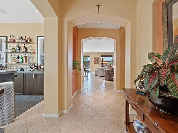 Stunning Chianti Model with Panoramic San Joaquin Mountain Views!Rarely available and impeccably maintained & recently painted, this luxurious Chianti Model is located in one of the most sought-after gated communities, Tuscany in Rancho Mirage. Enjoy breathtaking amazing panoramic views of the San Joaquin Mountains from your own private oasis. This partially furnished (per inventory) former model home offers designer upgrades throughout and includes a versatile casita-style retreat with separate entry, perfect for guests, a home office, or studio.Step inside to find a spacious open-concept floor plan featuring elegant custom tile, granite countertops, stainless steel appliances, new refridgerator and a large island with wet bar ideal for entertaining. European-style maple cabinetry provides an abundance of storage, while your own personal bar that opens to the outdoors elevates your hosting experience. The home is also equipped with dual-zone air conditioning, a cozy fireplace, and a fully integrated home theater & audio system with surround sound throughout.The expansive primary suite includes a luxurious bath with a soaking tub, enclosed shower, and generous walk-in closet. Step outside to a resort-style backyard where you'll find a saltwater pool and spa with waterfall, a fully loaded built-in BBQ, misting system and plenty of space to relax or entertain all set against a backdrop of stunning mountain vistas. AND PAID SOLAR!Enjoy the lifestyle this exceptional community offers, with amenities including a pool, spa, dog park, playground and scenic walking/jogging trails. You own the land, and the low HOA fees include cable and TV. This is desert living at its finest don't miss this incredible opportunity!