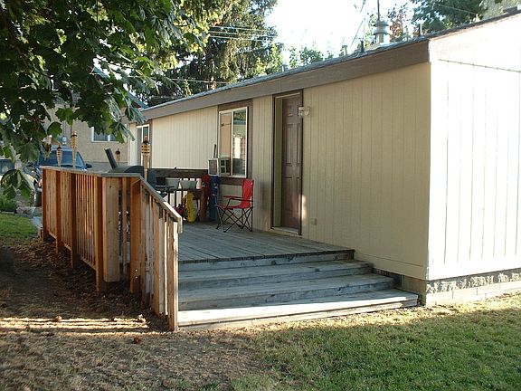 Manufactured home on corner lot. Dual pane windows, vaulted ceilings, recent paint inside and out. Couple blocks from downtown, grocery store and banks. Lots of off street parking.