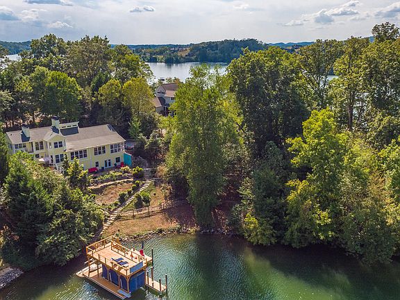 Welcome home to your LAKEFRONT RETREAT in a private cove within Foothills Pointe subdivision! This well maintained and meticulously designed home features water views from nearly every room, multiple decks and patio areas, 2-tiered dock with lift and sun deck, and fire pit overlooking the water. You'll love the extensive ''secret garden'' walk ways around the exterior of the home and mature trees and landscaping. The interior features hardwood & tile flooring throughout main level & basement. Towering ceiling & fireplace in the living space is complimented by a cozy sunroom and kitchen with breakfast nook and island. Two ample bedrooms and large laundry room with extra storage are also on the main level. Upstairs master suite has VIEWS GALORE with its own deck overlooking
