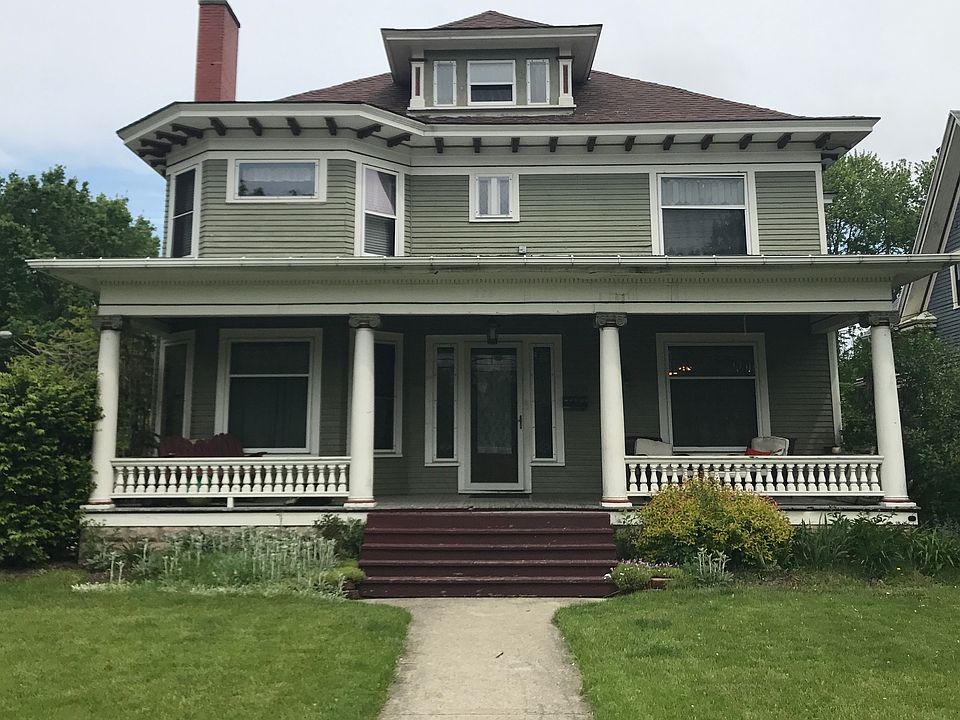 Take IMMEDIATE POSSESSION of this gorgeous century home exploding with early 1900's charm including the woodwork, pocket doors, leaded glass windows and hardwood floors! 4/5 bedrooms, 1 1/2 baths, spacious kitchen, HUGE foyer, decorative fireplace and spacious bedrooms. The main floor bonus room could be a 5th bedroom, office or playroom. Front and rear covered porches, fenced yard, basement and a two car garage. The walk-up attic could be finished off if even more living space is desired....endless possibilities. All dates, room sizes and square footage are approximate.