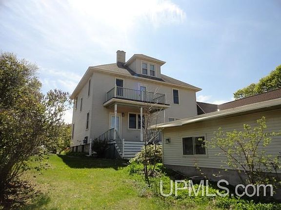PRICE RECUDED!!! Now offered at $399,000 Truly "ONE OF A KIND" home rarely found in Munising - stately 3 story with hardwood floors and restored wood work throughout, 5 bedrooms, 2.5 bath, formal dining room, spacious living room with fireplace, family room/den with pocket doors, compact efficient kitchen, upper level deck off one of the bedrooms overlooking beautiful Lake Superior's Munising Bay. A roofed front porch, detached oversized 2 car garage with work shop and separate unfinished bungalow for "mother-in-law" or guests. The 5th bedroom is located on the 3rd floor with two dormers and could easily be used as a master suite!! NEW ROOF ON BOTH HOUSES August 2023. Currently used as a vacation rental.