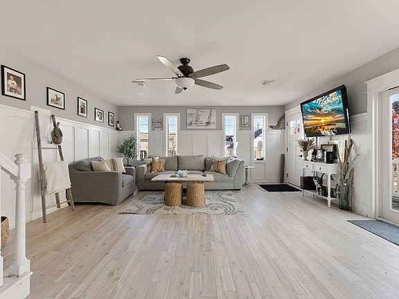 Single Family Home at the Shore - Raised and Already Updated! Check out the Awesome Woodwork, Beautiful Wood Flooring Throughout, Completely Renovated Kitchen, NEW Appliances, Hot Water On-Demand, Etc. The main house is a 2-level home consisting of Living Room, Kitchen w/ Island, Dining Room, Laundry room, 3 Bedrooms, 1 and 1/2 baths, 3 Decks and Fenced-in Rear Yard! Coming completely furnished less seller personal items! The first level of this property is for storage.