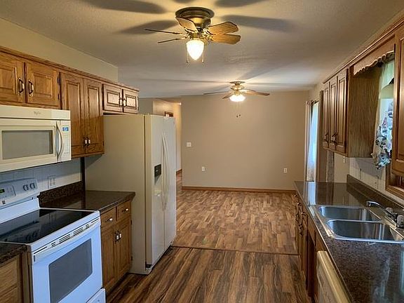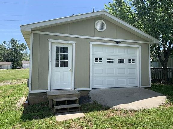 Wow! Impressive and affordable property package located in El Dorado Springs!  This 3 bed / 2 bath home was built in 1997, and boasts 1,268 sq ft of living space, plus a 2-car attached garage.  The home shows very well, with a new paint job on the interior.  The kitchen is sharp as a pin and features beautiful oak cabinetry, nice counter-tops and appliances (dishwasher, range, microwave, and refrigerator), and nice flooring, which flows into the large laundry room. The attached garage is over-sized with nice storage/work area in the back.  The front of the home has great curb appeal with a paved driveway, beautiful front porch, and mature landscaping.  The back yard is spacious with a 20'x20' outbuilding, boasting concrete, electric, and a garage door.  This is the complete property package.  Call today!