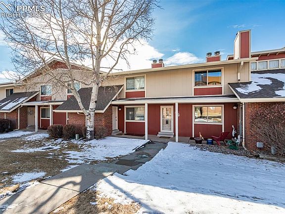 WELCOME HOME to this beautifully updated townhome in the coveted Rockrimmon neighborhood. Townhome is tucked just off Delmonico Dr. allowing for on street and off-street (via the cover 2 car carport) parking. As you enter from the covered front porch you will find your self in a light and bright living room boasting a corner built-in media console, wood burning fireplace and NEW wood laminate flooring. Drawing further along the main level you will find an ½ bath and laundry room, as well as, an open dining room-kitchen area. The kitchen is a true treasure with updates abound to include: granite counters, white cabinetry, modern tiled backsplash, new stainless steel appliances, new stainless steel sink w/ faucet, and the same wood laminate flooring. The attached open dining space allows easy access to step out into the fenced courtyard patio, as well as, easy access to the assigned 2 car carport. On the upper level you will find a dual primary bedroom arrangement with the first primary bedroom boasting terrific northern mountain views and a extended walk-in closet. The second primary bedroom boasts terrific southern mountain views, as well as, a dual closets and a farmhouse built-in headboard. Both bedrooms are carpeted with NEW plush carpeting and share a fully remodeled jack-and-jill ¾ bath that includes a raised vanity, new flooring and a beautiful shower that includes Sentrel Flexstone Paneling and Onxy Collection shower pan w/ built-in bench.. In the basement you will find a terrific family room ready for a family movie night. Space also includes another gas fireplace, as well as, access to another updated ¾ bathroom and spacious 3rd bedroom. Water and trash included in HOA! Come check out this townhome and make this home your home today!