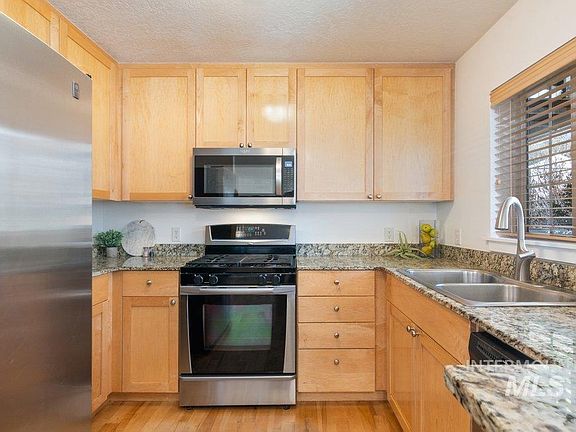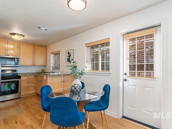 Fetch the North End’s lowest priced home! It offers comfortable & enjoyable living experience in a vibrant & scenic community. This open & versatile condo delivers function & versatility. The kitchen, complete w/ breakfast bar, is filled with natural light, creating a bright & welcoming atmosphere. The living room opens up to a gated patio that overlooks lush green space, providing a lovely & relaxing outdoor area. The primary bedroom is spacious with large walk-in closet, offering ample storage. The huge downstairs room offers various uses due to its size, closets & egress window. HOA covers essential services & amenities that makes for a hassle-free living experience. Includes a pool, hot tub, gym, pet/bike wash station, water, hot water, trash removal, lawn care, assigned parking, maintenance & a storage unit. The condo boasts hardwood floors, new carpet, fresh paint, new roof & a relatively new sewer line. Call your agent to tour this home today!