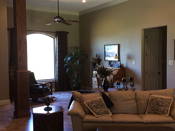12 foot walls in living room. 10 foot walls in all other rooms. All 8ft doors. Granite counter tops and oak cabinets in kitchen. Crown molding. 30ft X 50ft all metal shop with oak wall dividing shop with built in cabinets. Shop inludes 3 roll up doors. Driveway is 24ft wide concrete at road and 55ft wide at shop entrance. House and shop have gutters. Call for more info.