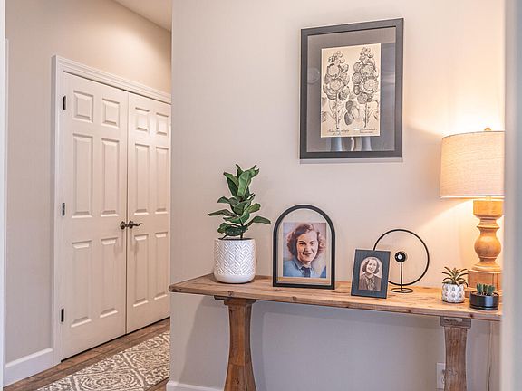 This stunning custom one-level home offers spacious room sizes and luxury vinyl plank flooring throughout. The open-concept living area includes a cozy gas fireplace, perfect for family gatherings. The chef's kitchen is a dream, designed for entertaining with open sightlines to the living room, making it ideal for hosting.