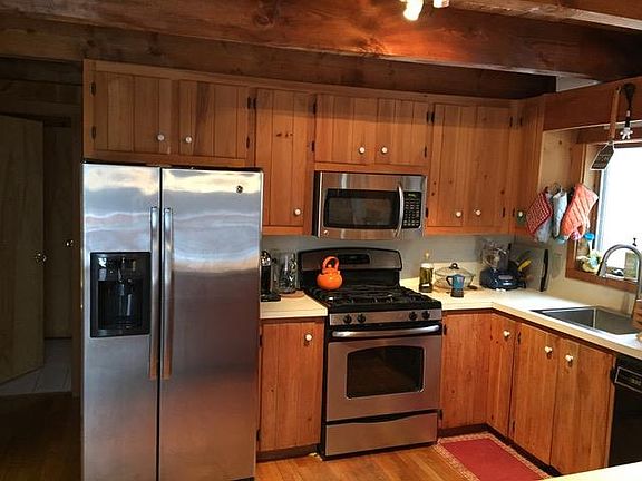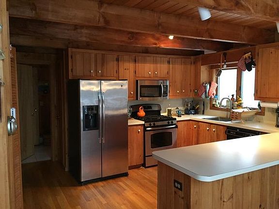 The house is located in Becket, MA, in a private community called Becketwoods . The community has two tennis courts (not sure though that they are open yet for the season) and a pond. The house (chalet style) is in the woods, with about 4,5 acres. It's about 1,600 square feet. On the main floor it has an open space with kitchen, living room with twos sofas, two chairs and a dining aerea with table and chairs . There are three bedrooms: 1 master room (with a queen size bed and a twin bed) on the main floor with the master bathroom ; 1 bedroom with a king size bed upstairs and a smaller room with a a bed bunks twin beds. These two rooms share the bathroom. Both bathrooms have bathtubs.There are also a deck (with a table and chairs) and a screened porch. There is also a pretty big garage and a pool; the pool is closed.