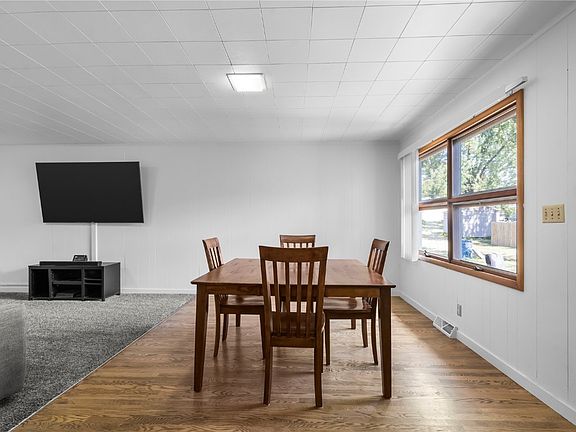 Welcome to this charming ranch-style home nestled on a tranquil street, located in the highly desired Marion School District, boasting a classic design and modern updates throughout. As you enter, you're greeted by the timeless allure of solid hardwood floors that extend seamlessly from the living room to the kitchen, dining room, hallway, one of the spare bedrooms and the primary bedroom. The kitchen is a blend of modern convenience and rustic character, featuring updated countertops and stainless steel appliances including a sleek refrigerator and dishwasher. A vintage stainless hood fan adds a touch of nostalgia, while accent butcher block counters on one cabinet infuse unique charm into the space. The dining area conveniently flows into a cozy family room, complete with a crafted fireplace that not only adds warmth but also offers clever storage solutions. From the dining area, step onto the beautiful patio and soak in the serene ambiance of the spacious and level backyard. The updated hall bathroom is a vision of modern elegance, showcasing updated cabinets, countertops, and tasteful accents. The primary bedroom is a tranquil retreat with its beautiful hardwood flooring, ample closet space, and an abundance of natural light pouring in through large windows. Additional bedrooms offer new carpet and loads of storage. Descending to the lower level, you'll find a versatile space currently set up as a non-conforming bedroom, perfect for guests. The lower level also houses laundry facilities and open storage space, adding to the functionality and convenience of this wonderful home. Roof was replaced in 2020. With its thoughtful layout, modern amenities, and timeless hardwood accents, this ranch home is an inviting haven in a peaceful neighborhood, offering both comfort and style for everyday living.