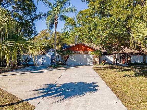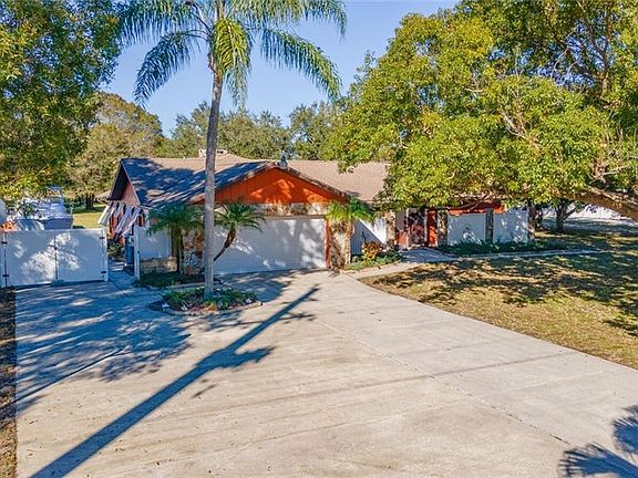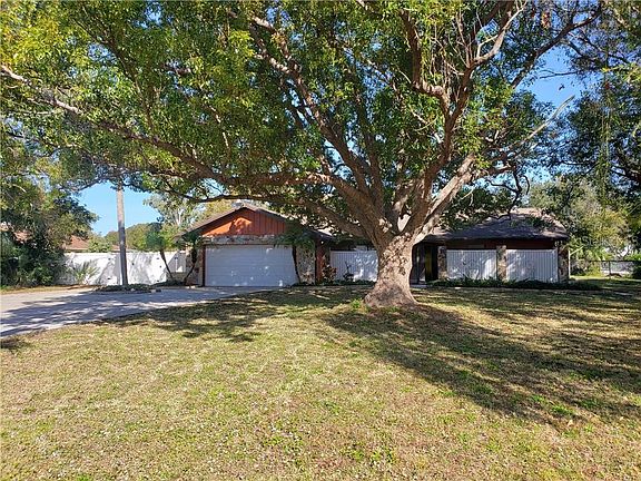 The versatility and adaptability of this 2 bedroom + den/office, 2 bath ranch is what makes this home so special. Original floor plan included a 3rd bedroom but homeowner opened up the space making the living room open and spacious for all gatherings. Two walls can easily convert it back to a 3 bedroom if desired. This American classic was built in 1981 (effective year built 1999) with block, stucco and fieldstone. The internal living space measures in at 1729 sq.ft with an open floor plan that is synonymous with laid back living. The property is more than one acre and has gated boat parking and a large out building/shed complete with a John Deere riding lawn mower. The front court yard will lead you into a spacious foyer that has unobstructed views to the back yard. You can step down into the living room with French doors and go directly outside. The open kitchen design is mainly dominated by the sprawling breakfast bar and massive great room. A floor to ceiling fireplace gives the great room a rustic flair and is a dramatic feature in the layout. The kitchen evokes vintage style with laminate counters but the appliances have been replaced with upmarket stainless steel. Cabinets are plenty and the work triangle makes this kitchen easy to navigate. One of the 2 bathrooms have been totally updated while the second one has some partial upgrades. Laundry is a separate room with w/d hookup, storage cabinets and access to the attic. The back yard space will amaze and thrill. Nothing makes lingering outdoors, (no matter how much the temperature drops), more enticing that a crackling fire. An outdoor fireplace is tucked into the far end of the rambling screened porch that could easily accommodate a conversation area, beverage area and alfresco dining for a large number of guests. Zoning is horse friendly and the GIANT back yard is fully fenced for your four legged friends. Boat available for purchase upon a separate agreement. Home is minutes from the water where fishing and relaxing on the beach are favorite pastimes. Top outdoor attractions include Emerson Point Preserve, Felts Audubon Preserve and the Regatta Pointe Marina. Shopping, eclectic dining and cultural actives make this an ideal location. Commuters dream; close to 275 and I75. GIVE THIS HOME A NEW LEASE ON LIFE, ADD SOME MODERN RENOVATIONS AND REAP THE BENEFITS.
