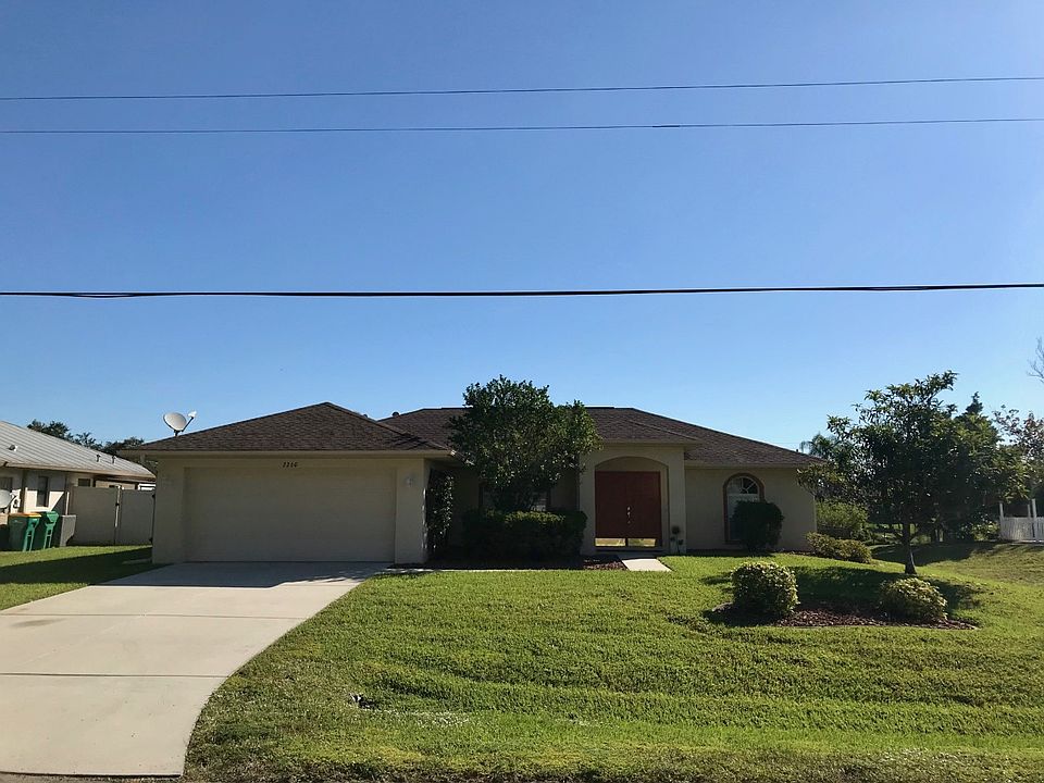 Enjoy the water view from this charming split-plan, 3-bedroom home with over-sized covered lanai. Home features include a spacious living room with tall pocket sliders open to the lanai and surround sound in place. The master suite on one side of the home is spacious with large walk-in closet, dual sinks/makeup counter, and walk-in shower with seat. Connected is a bonus room for office/nursery/fitness room or extra storage, both with private lanai access. The kitchen with breakfast bar is open to the dining room and dinette, along with the inside laundry. On the opposite side, find 2 large guest bedrooms with ample closet space and great natural light, sharing the guest bathroom with tub/shower combination, also all accessible to the spacious lanai. Features include covered front entry with double doors, arched front windows, several plantation shutters, upgraded window treatments , volume ceilings, plant shelves, bullnose corners on walls, tile floors except bedrooms, extra-tall pocket slider to lanai, kitchen has staggered height and depth cabinets, under cabinet lighting, a fenced back yard with bench and fruit trees, irrigation system with canal water, gutters, NEW appliances.