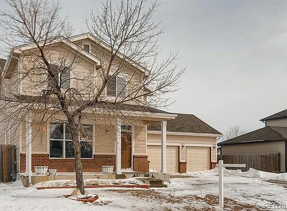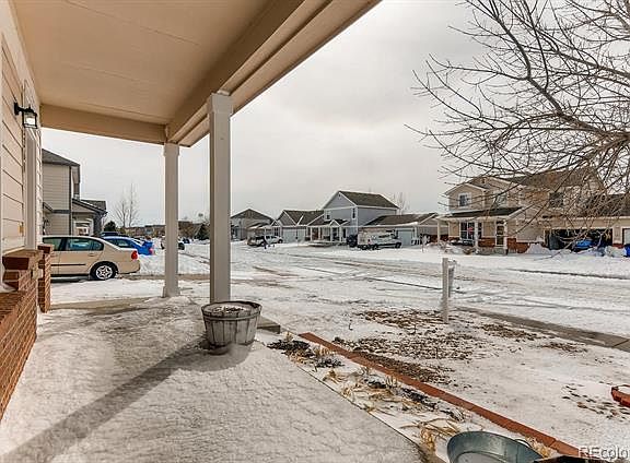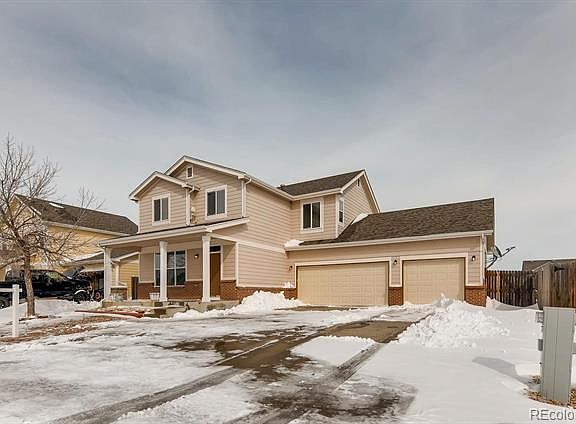 Welcome home to this lovely 4 bedroom and 3 bathroom home in Strasburg, Colorado. This is an immaculate and great family home! This home is in a great neighborhood and features a 3 car garage and covered front porch, new paint and all new flooring upstairs. Entering the home you are greeted into the large family room that wraps around to the bright dining room. The spacious wrap around kitchen, has tons of cabinet space and an abundance of counter-tops, and an office nook. The upper level features 3 great size bedrooms and a large mast suite and 2 full bathrooms. The en-suite bathroom has a dual vanity and a custom privacy barn door. There is a private laundry room with lots of cabinets and a work area. The back yard has a large play area, huge patio and tons of space for kids to runaround and BBQ with friends. All this in a great family neighborhood and close to shops and highways!