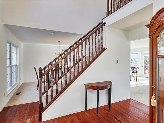 Nestled in a great Wentzville neighborhood, this inviting 5-bedroom, 3 ½ bath, 2-story home charms with a covered porch and warm hardwood-floored 2-story foyer. The main level delights with an office, a formal dining room, and a sunlit family room boasting a gas fireplace. The kitchen, equipped with an island and breakfast area, extends to a deck overlooking the spacious backyard, perfect for gatherings. Completing this level is a main floor laundry and half bath.  Upstairs, the expansive master suite boasts a luxurious bath with a separate tub and shower and large walk-in closet, complemented by three bedrooms and a bath. The lower level offers a walk-out to a serene patio from the spacious recreation room.  A fifth bedroom and full bath complete this perfect blend of comfort and charm.  Also enjoy cost-effective access to numerous over-the-air channels throughout the house via an attic-mounted antenna. This home is conveniently located in the North Point High School District.