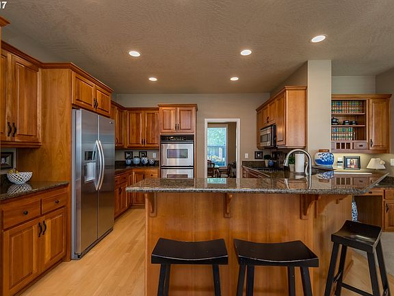Stunning home w/ hardwood floors, recessed lighting, crown moldings & surround sound. Gourmet kitchen w/ granite counters, cherry cabinets, stainless steel appliances, double-oven, breakfast bar & informal dining. Elegant formal dining room & living room w/ gas fireplace. Vaulted master suite w/ walk-in closet, walk-in shower, soaking tub & dual-sink vanity. Large bonus room & office w/ built-ins. Peaceful backyard w/ covered patio.
