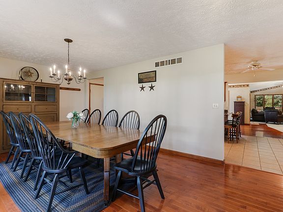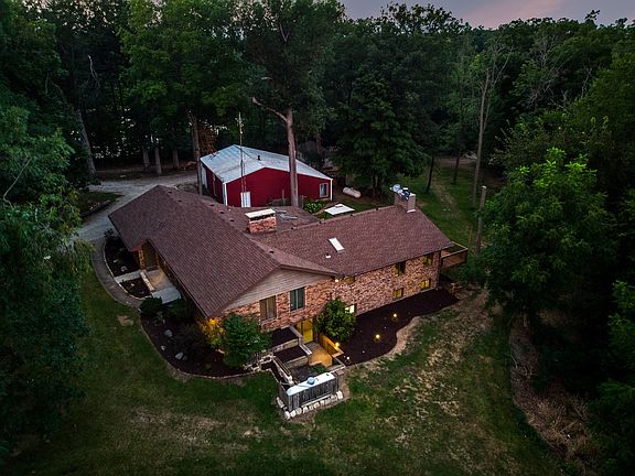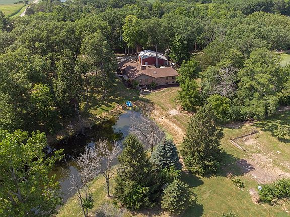 Remarkable Ranch on 10+ Acres with Private Lake, Pond, Fruit-bearing trees and bushes (Apple, Peach, Cherry, Apricot, Pecan, Hazelnut, Black Raspberry, and Blueberry) Farmhouse decor adorns three living spaces with three fireplaces and modern SS kitchen appliances and granite countertops. Master offers beautiful lake views with a large ensuite that boasts jetted tub, walk-in closet, double vanity, and separate shower, plus two additional main-level bedrooms and bath. The spacious walk-out basement offers two additional entertainment areas, plus a bedroom and a third full bath, an oversized utility room, and a massive unfinished storage area with a workbench and cabinets. Basement offers walk-up to the extra deep 2-car garage with half bath; quick access to two outbuildings (one 40'X40' could fit 3 vehicles) both with wood stoves. Geothermal 2010, Generator that also protects outbuildings, and Roof 2011.