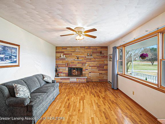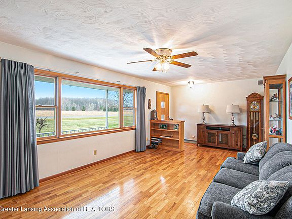 Wonderful country living on almost 4 acres on paved road. There is a workshop plus a 30x 40 pole barn with cement floor. The home has a 4 seasons room, wood burning fireplace and hardwood floors. The main bathroom has been updated to barrier free shower. Still need more room to have fun, you'll enjoy the large basement that was used as a game room and for holding holiday events.