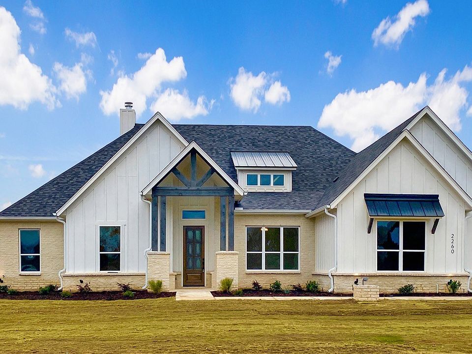 Modern Farmhouse with large open living area complete with cathedral ceilings and wood beams. This home has it all, 4 bedrooms, study, game room and 3 full baths. Open design is great for entertaining and the luxury vinyl floor are low maintenance. The kitchen has white cabinets, a large island, plenty of prep space, tons of storage and eat in dining area with beautiful views. The study and game room are perfect additions to the 4 bedrooms and 3 full baths this home offers. Primary suite is spacious and you can wake up to the views. Primary Ensuite has dual vanities, walk in shower and stand alone tub. Plenty of storage is provided in the 3 car garage for all your extra toy. 2 acre lot has so much potential, build a pool to relax by or an outbuilding for your workshop. Buy now and enjoy this rural retreat! Home is ready!!
