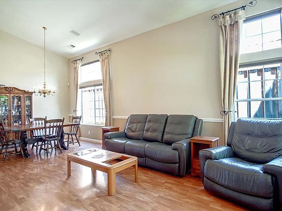Popular floorplan with a bedroom and full bathroom downstairs. Formal living/dining room, separate family room with fireplace and surround sound. Kitchen features tile floors, island and gas stove top. Laminate flooring throughout both first and second floors. Large master bedroom suite with vaulted ceilings, sauna, tub, stall shower, double sinks and walk in closet. The whole house solar system is owned and offers saving on your electricity bills. 7,000 square foot lot has a patio with built in gazebo and views of the foothills. Three car garage, newer fencing, auto sprinklers and tile roof add to the desirability of this home.