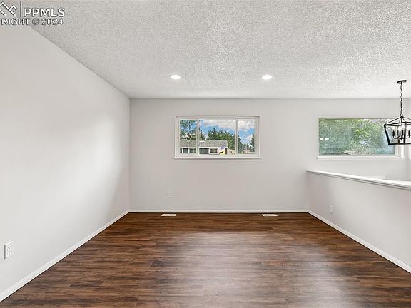 This spacious 4-bedroom, 2-bathroom single-family home offers comfortable living in a well-established Colorado Springs neighborhood with lots of trees and foliage. This goreous split level has been completely remodeled and is move in ready! Large fenced backyard, backs to open space / school yard with Mountain Views! Enjoy the deck off of the kitchen and the covered patio below, Central Air installed 2 years ago, Close to shopping, schools, I-25, military bases, and walking trails.